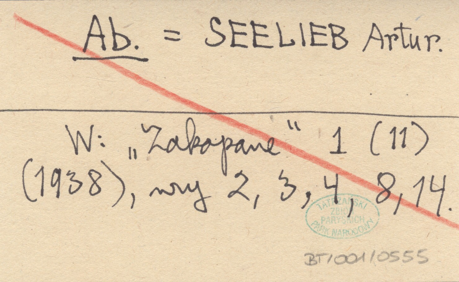Ab. SEELIEB Artur Zakopane 1 (11) (1938), nr 2, 3, 4, 8, 14.