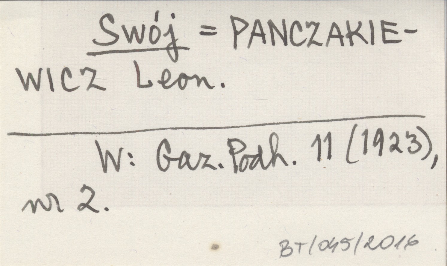 Swój PANCZAKIEWICZ Leon Gazeta Podhalańska 11 (1923), nr 2.