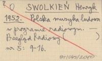 SWOLKIEŃ Henryk 1952 Polska muzyka ludowa w programie radiowym.