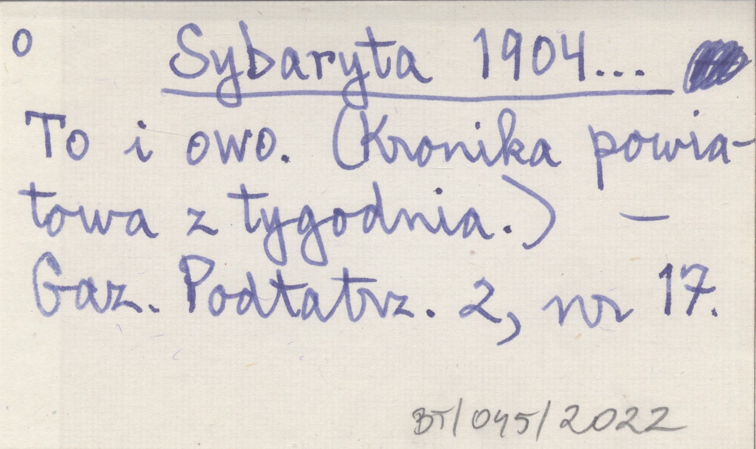 Sybaryta 1904... To i owo. (Kronika powiatowa z tygodnia).