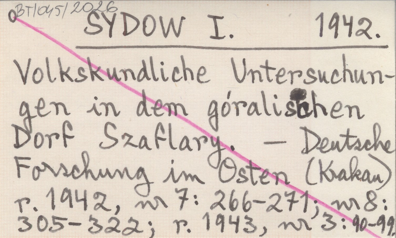 SYDOW I. 1942 Volkskundliche Untersuchungen in dem góralischen Dorf Szaflary.