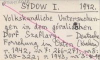 SYDOW I. 1942 Volkskundliche Untersuchungen in dem góralischen Dorf Szaflary.