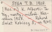 SYGA T. B. 1928 [Rec. o:] K. Alberti: Tatry, narty, miłość. Warszawa 1928.