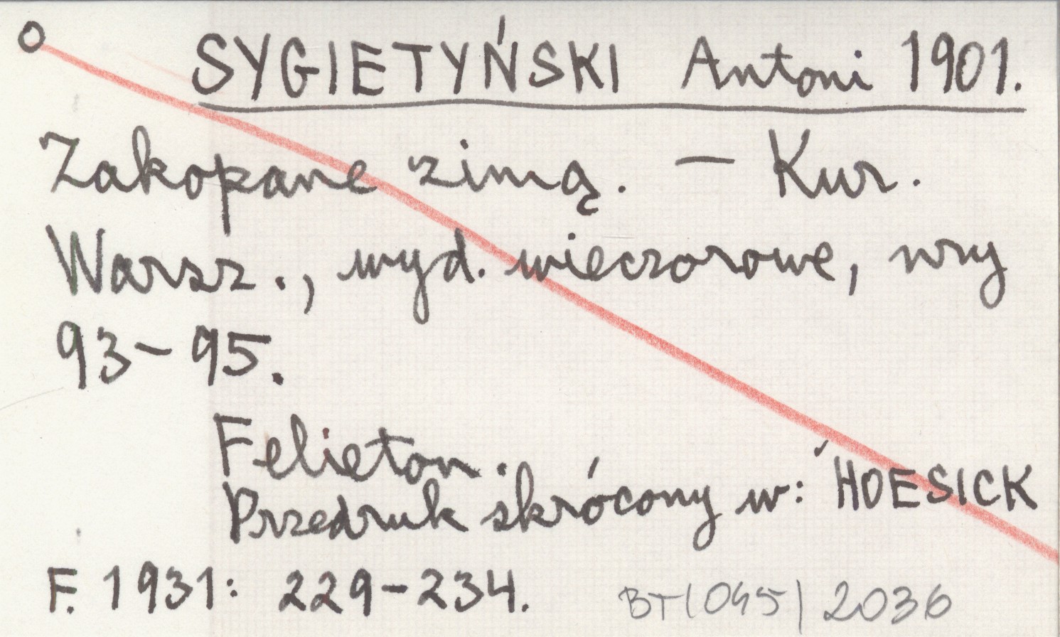 Kurier Warszawski, Wydanie wieczorne, nr 93-95. Felieton. Przedruk skrócony w: HOESICK F. 1931: 229-234.
