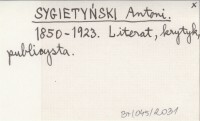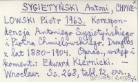 SYGIETYŃSKI Antoni CHMIELOWSKI, Piotr. ; 1963 Korespondencja Antoniego Sygietyńskiego i Piotra Chmielowskiego. Dwugłos z lat 1880-1904. Oprac., wstęp i koment.: Edward Kiernicki.