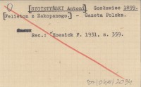 Gosławiec [SYGIETYŃSKI Antoni] 1899 [Felieton z Zakopanego.]