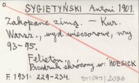 SYGIETYŃSKI Antoni 1900 Ruch artystyczny.