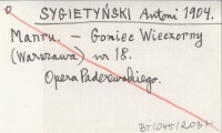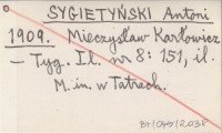 SYGIETYŃSKI Antoni 1909 Mieczysław Karłowicz.