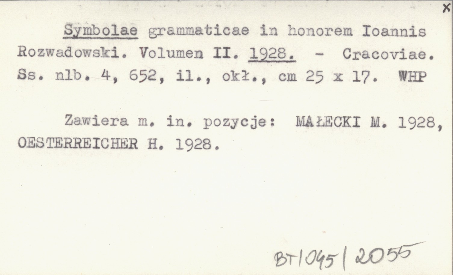 Symbolae grammaticae in honorem Ioannis Rozwadowski. Volumen II. 1928