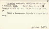 Sylwetki narciarzy rozsypane na śniegu w Tatrach. 1931