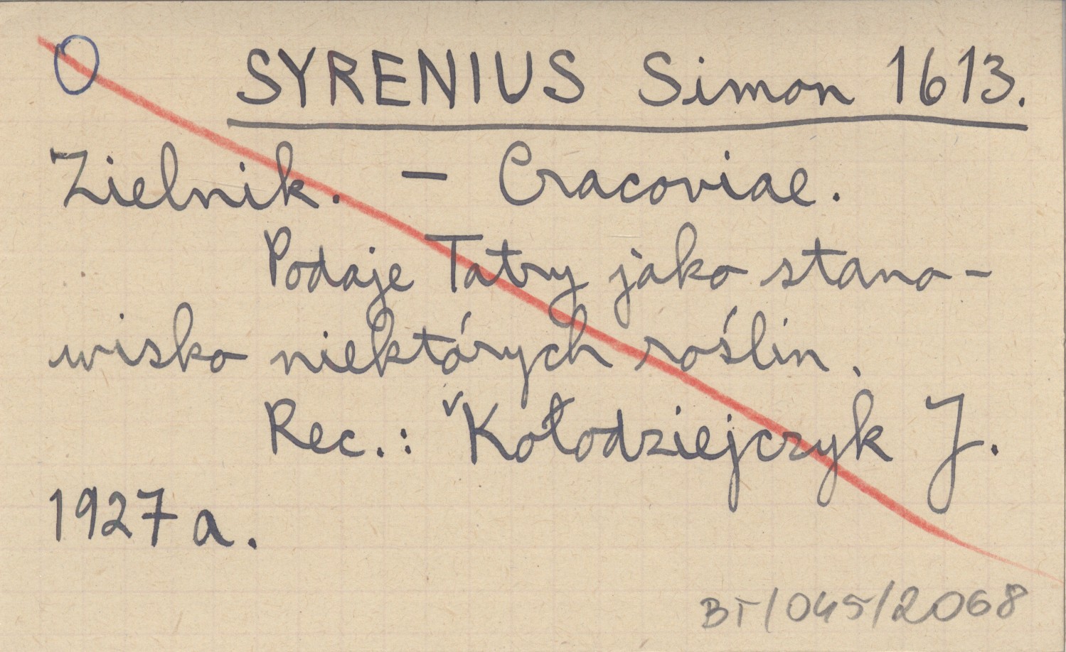 Cracoviae , Podaje Tatry jako stanowisko niektórych roślin. REC: KOŁODZIEJCZYK J. 1927 a