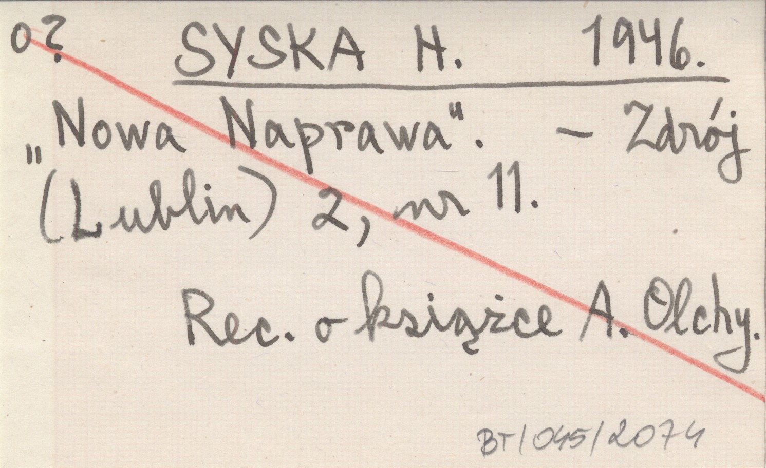 Zdrój (Lublin) , 2, nr 11. Recenzja o książce A. Olchy.