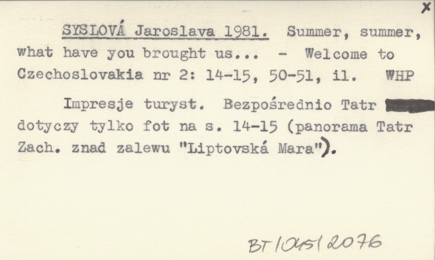 SYSLOVÁ Jaroslava 1981 Summer, summer, what have you brought us...