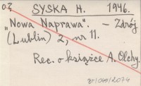 SYSKA H. 1946 "Nowa Naprawa".