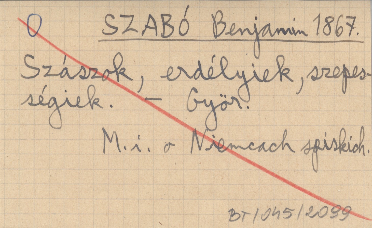 SZABÓ Benjamin 1867 Szászok, erdélyiek, szepességiek.