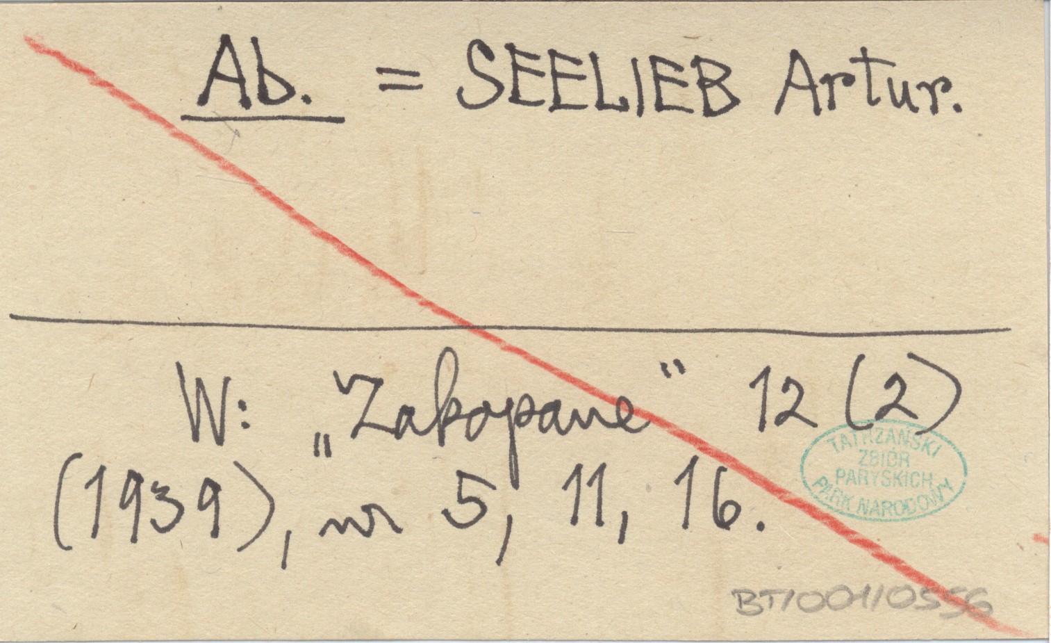 Ab. SEELIEB Artur Zakopane 12 (2) (1939), nr 5, 11, 16.