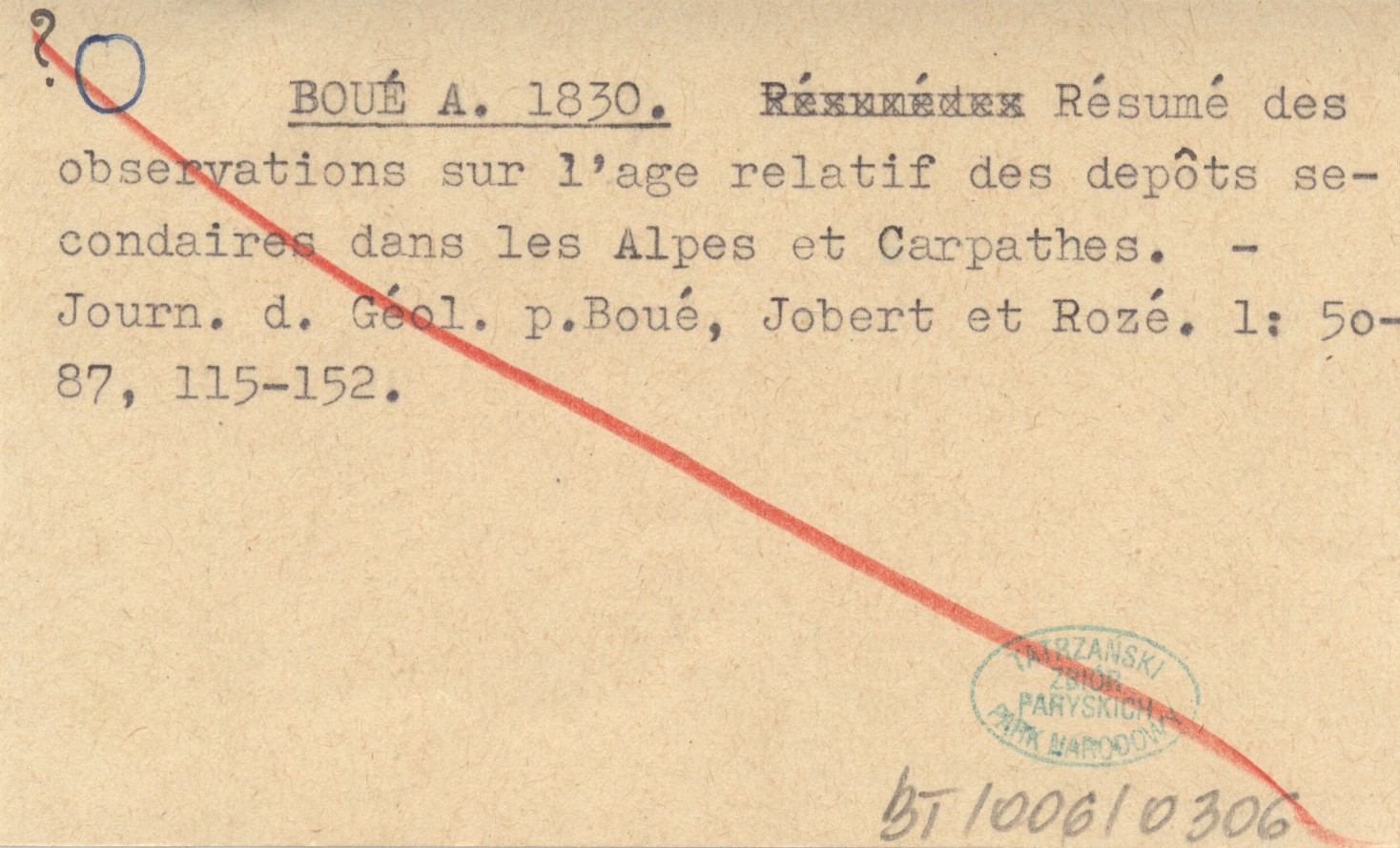 BOUÉ Ami 1830... Résumé des observations sur l'age relatif des depôts secondaires dans les Alpes et Carpathes.