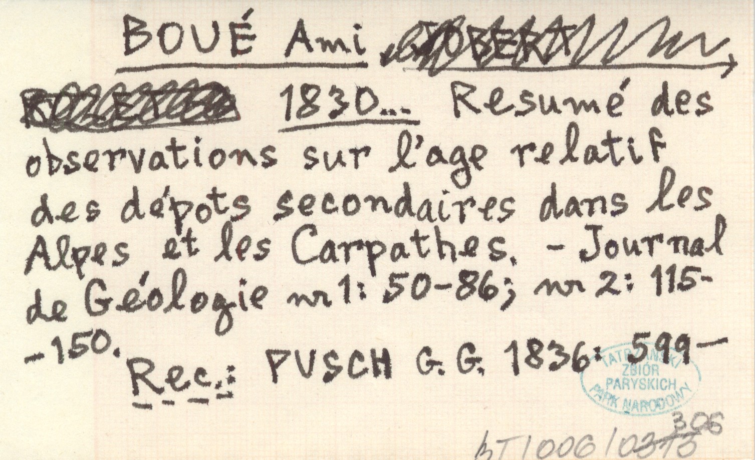 Journal de Géologie, Nr 1: 50-87 ; nr 2: 115-152. REC: PUSCH G. G. 1836: 599-