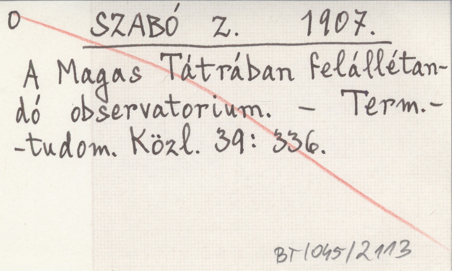 SZABÓ Z. 1907 A Magas Tátrában felállétandó observatorium.