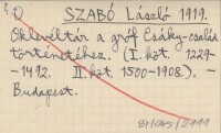 SZABÓ László 1919 Oklevéltár a gróf Csáky-család történetéhez. (I. köt. 1229-1492. II. köt. 1500-1908).