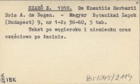 SZABÓ Z. 1910 De Kneutiis Herbarii Dris A. de Degen.