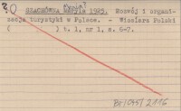 SZACHÓWNA Maryla 1925 Rozwój i organizacja turystyki w Polsce.