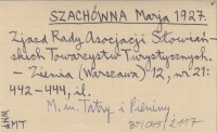 SZACHÓWNA Maria 1927 Zjazd i obrady Asocjacji Słowiańskiej Towarzystw Turystycznych.