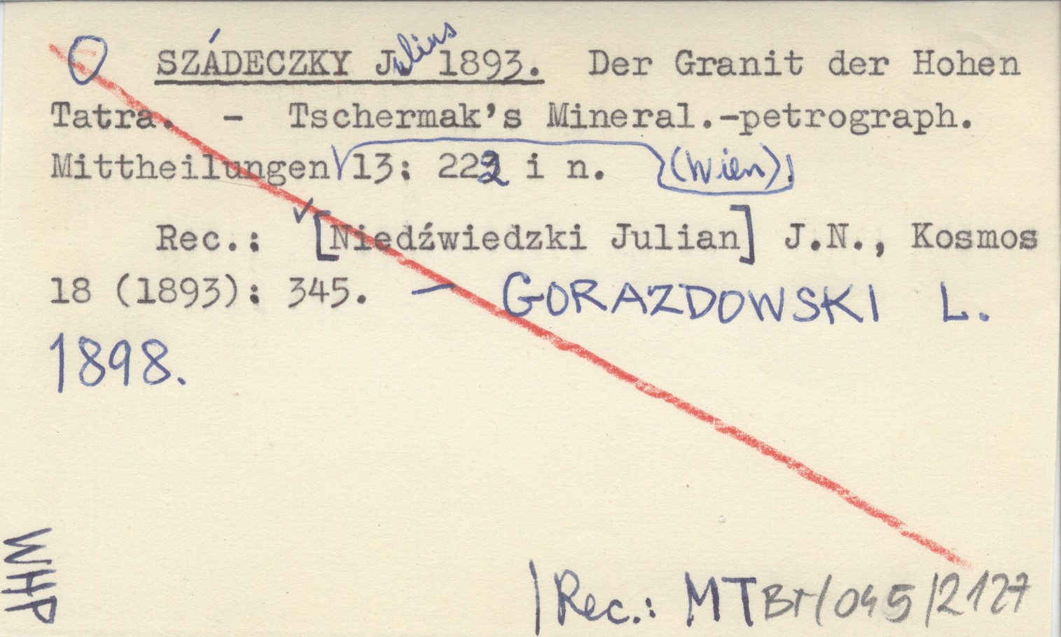REC: [NIEDŹWIEDZKI Julian] J. N., Kosmos 18 (1893): 345 ; GORAZDOWSKI L. 1898 ;