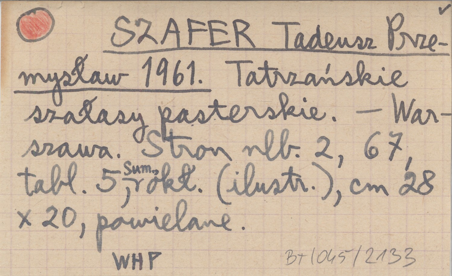 SZAFER Tadeusz Przemysław 1961 Tatrzańskie szałasy pasterskie.
