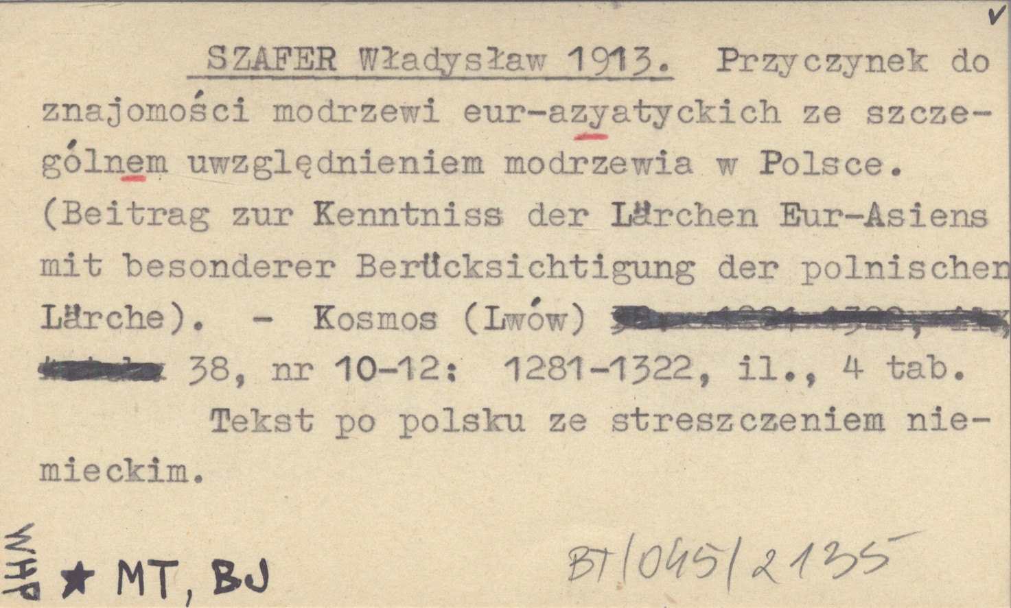 SZAFER Władysław 1913 Przyczynek do znajomości modrzewi eur-azyatyckich ze szczególnem uwzględnieniem modrzewia w Polsce. (Beitrag zur Kenntniss der Lärchen Eur-Asien mit besonderer Berücksichtigung der polnischen Lärche).