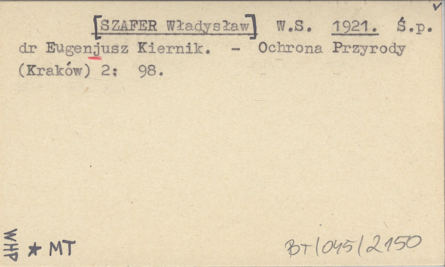 W. S. [SZAFER Władysław] 1921 Ś.p. dr Eugenjusz Kiernik.