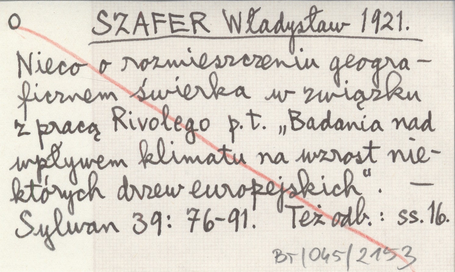 SZAFER Władysław 1921 Nieco o rozmieszczeniu geograficznem świerka w związku z pracą Rivolego p.t. "Badania nad wpływem klimatu na wzrost niektórych drzew europejskich".