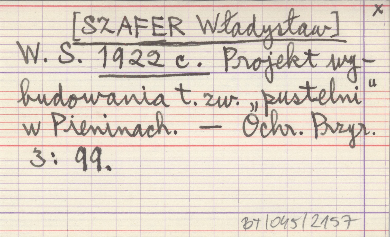 W. S. [SZAFER Władysław] 1922 c Projekt wybudowania t.zw. "pustelni" w Pieninach.