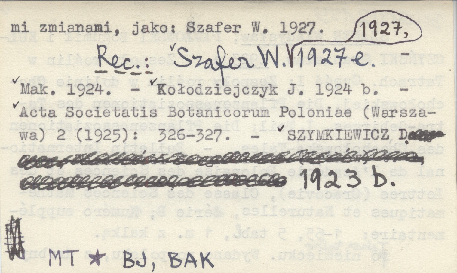 Bulletin International de l'Akadémie Polonaise des Sciences et des Lettres, Classe des Sciences Mathématiques et Naturalles (Cracovie) , Ser. B, Supl.: 1-65, 5 k., 1 mapa. Tekst tylko po niemiecku. Wydano po polsku, z drobnymi zmianami, jako: SZAFER W. 1927. REC: SZAFER W. 1927, 1927 e ; Mak. 1924 ; KOŁODZIEJCZYK J. 1924 b ; Acta Societatis Botanicorum Poloniae (Warszawa) 2 (1925): 326-327 ; SZYMKIEWICZ D. 1923 b ;