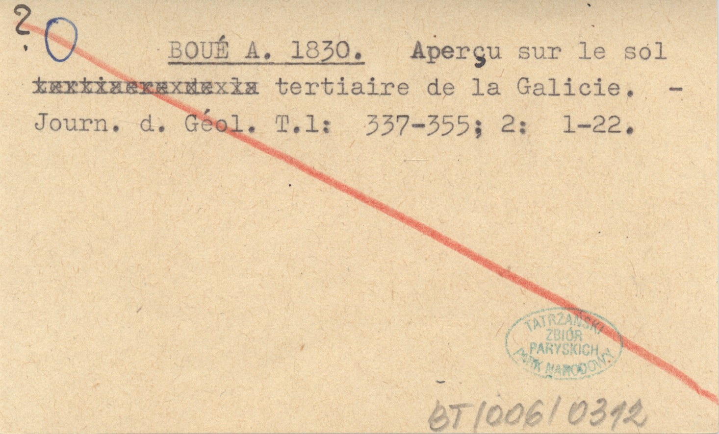 BOUÉ A. 1830 Aperçu sur le sol tertiaire de la Galicie.