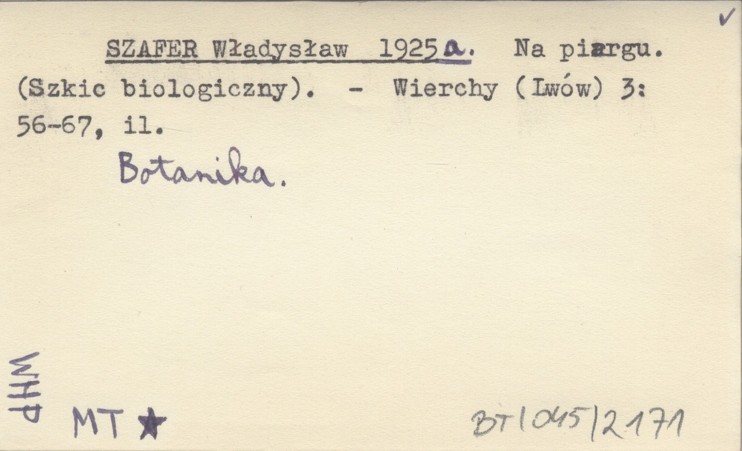 SZAFER Władysław 1925 a Na piargu. (Szkic biologiczny).