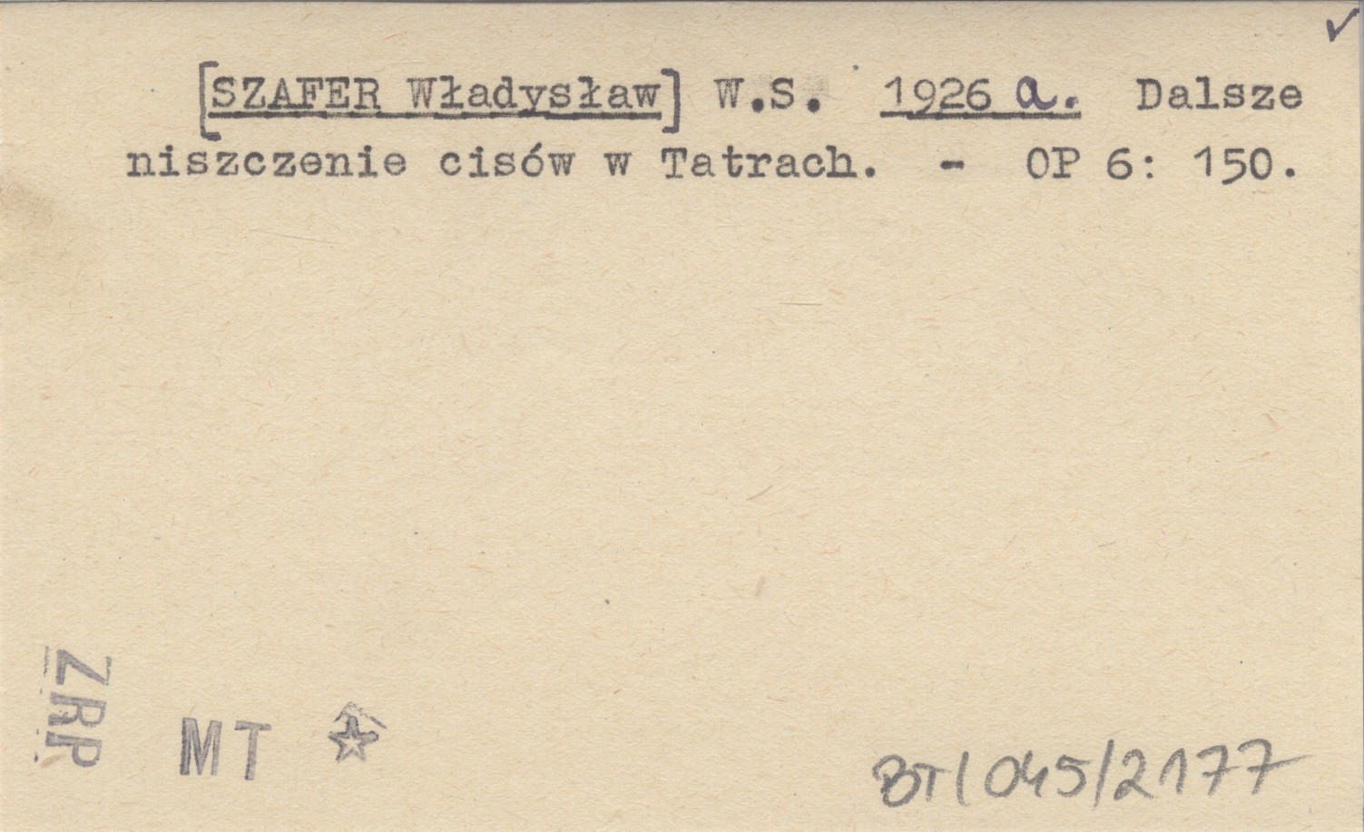 W. S. [SZAFER Władysław] 1926 a Dalsze niszczenie cisów w Tatrach.