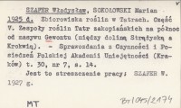SZAFER Władysław SOKOŁOWSKI, Marian. ; 1925 d Zbiorowiska roślin w Tatrach. Część V. Zespoły roślin Tatr zakopiańskich na północ od masywu Gewontu (między doliną Strążyską a Krokwią).
