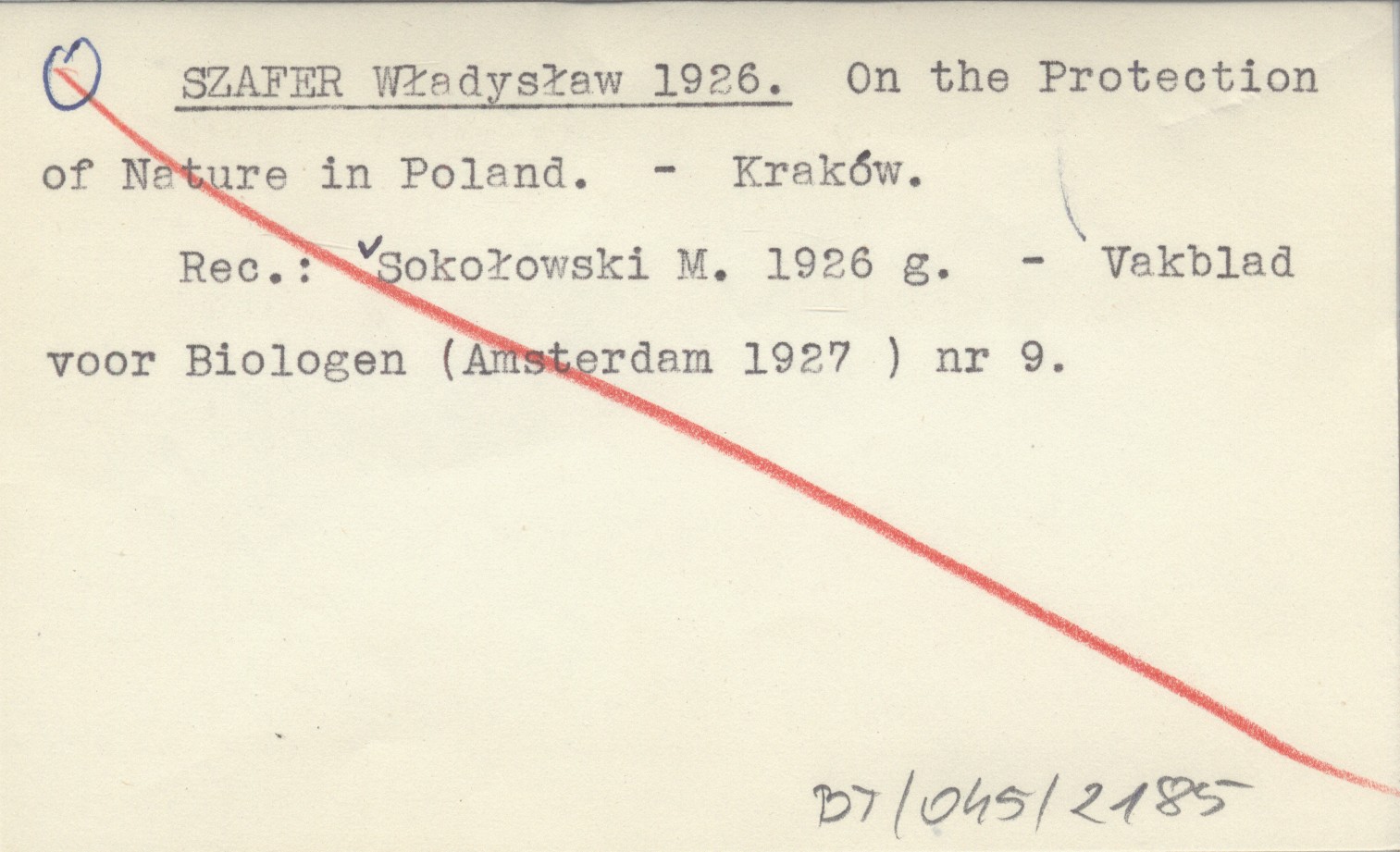 SZAFER Władysław 1926 On the protection of nature in Poland during the last five years, 1920-1925.