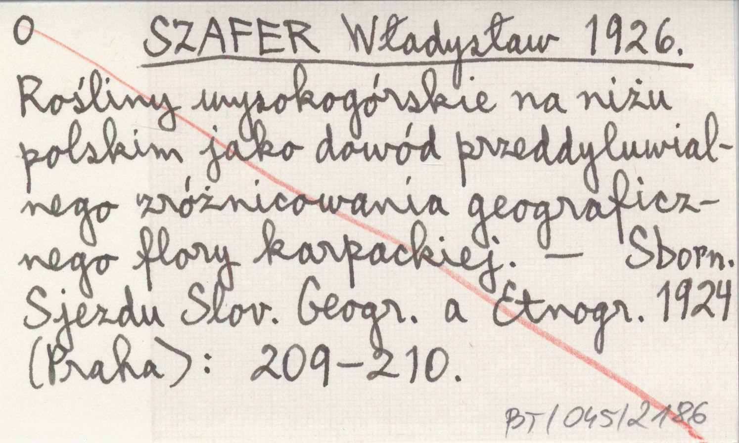 SZAFER Władysław 1926 Rośliny wysokogórskie na niżu polskim jako dowód przeddyluwialnego zróżnicowania geograficznego flory karpackiej.