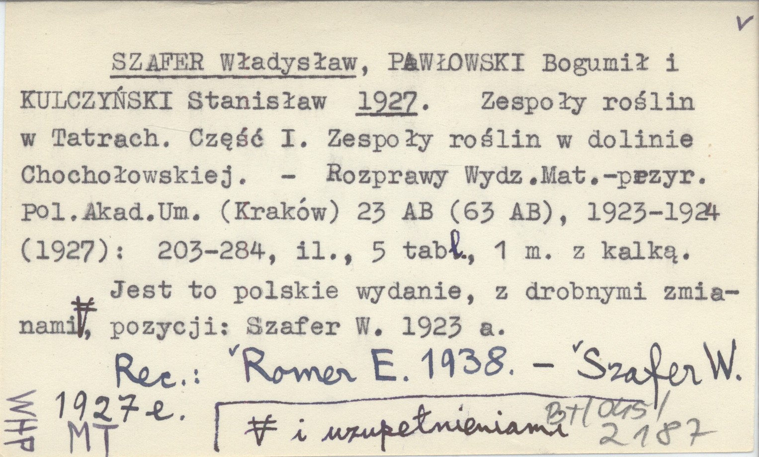 Rozprawy Wydziału Matematyczno-Przyrodniczego Polskiej Akademii Umiejętności (Kraków) , 23 AB (63 AB), 1923-1924 (1927): 203-284, il., 5 k., 1 mapa. Jest to polskie wydanie, z drobnymi zmianami i uzupełnieniami, pozycji: SZAFER W. 1923 a. REC: ROMER E. 1938 ; SZAFER W. 1927 e ;