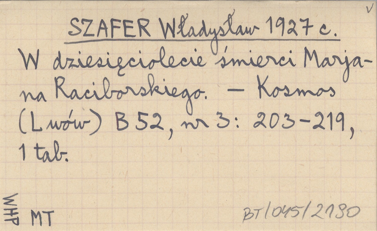 SZAFER Władysław 1927 c W dziesięciolecie śmierci Marjana Raciborskiego.