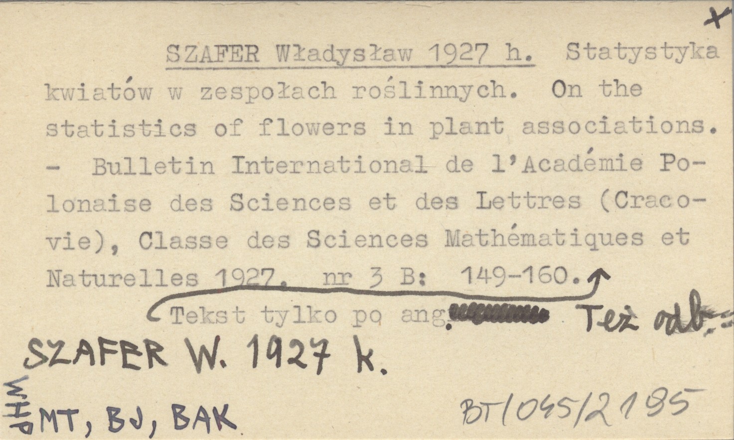 Bulletin International de l'Akadémie Polonaise des Sciences et des Lettres, Classe des Sciences Mathématiques et Naturalles (Cracovie) , Nr 3 B: 149-160. Tekst tylko po angielsku. Też odb.: SZAFER W. 1927 k.