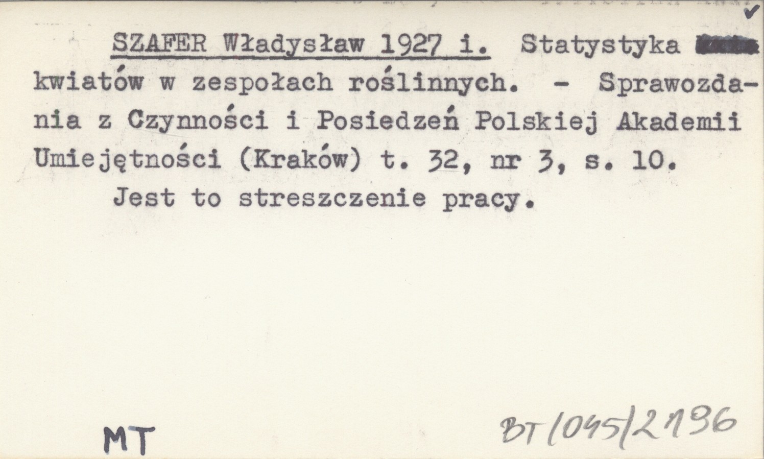 SZAFER Władysław 1927 i Statystyka kwiatów w zespołach roślinnych.