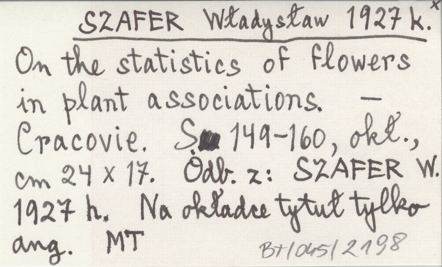 SZAFER Władysław 1927 k On the statistics of flowers in plant associations.