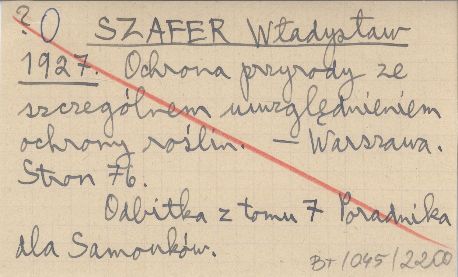 SZAFER Władysław 1927 Ochrona przyrody ze szczególnem uwzględnieniem ochrony roślin.