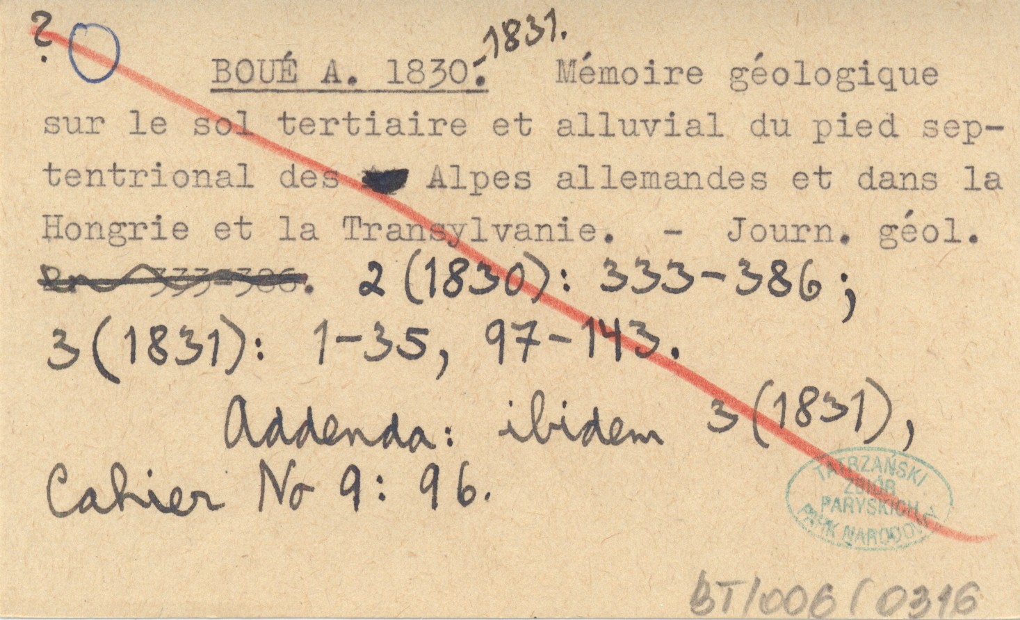 Journal de Géologie, 2 (1830): 333-386 ; 3 (1831): 1-35, 97-143. Addenda: ibidem 3 (1831), Cahier No 9: 96.
