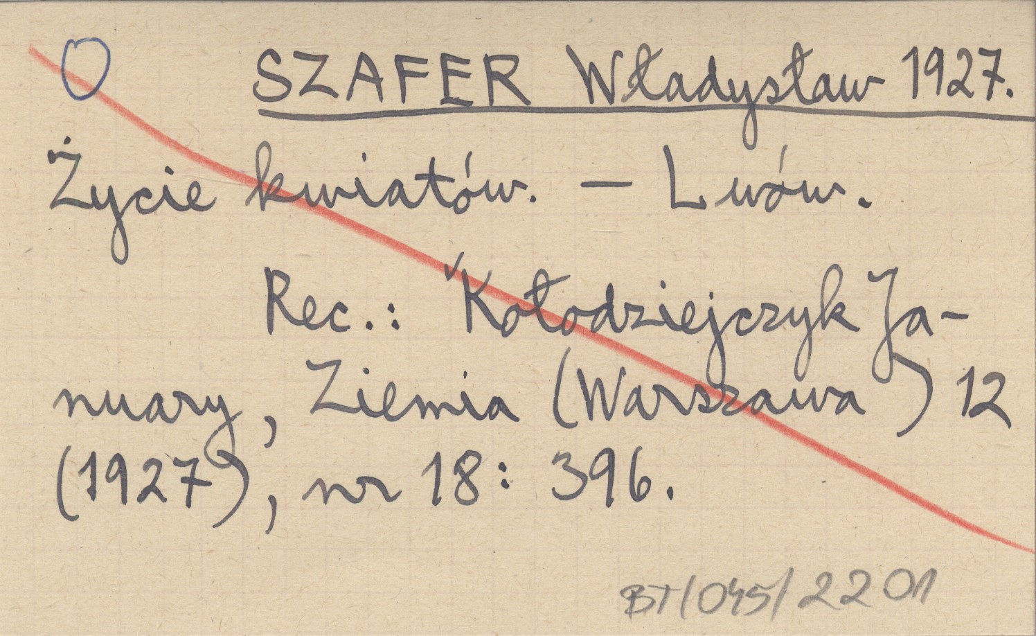 REC: KOŁODZIEJCZYK January, Ziemia (Warszawa) 12 (1927), nr 18: 396.
