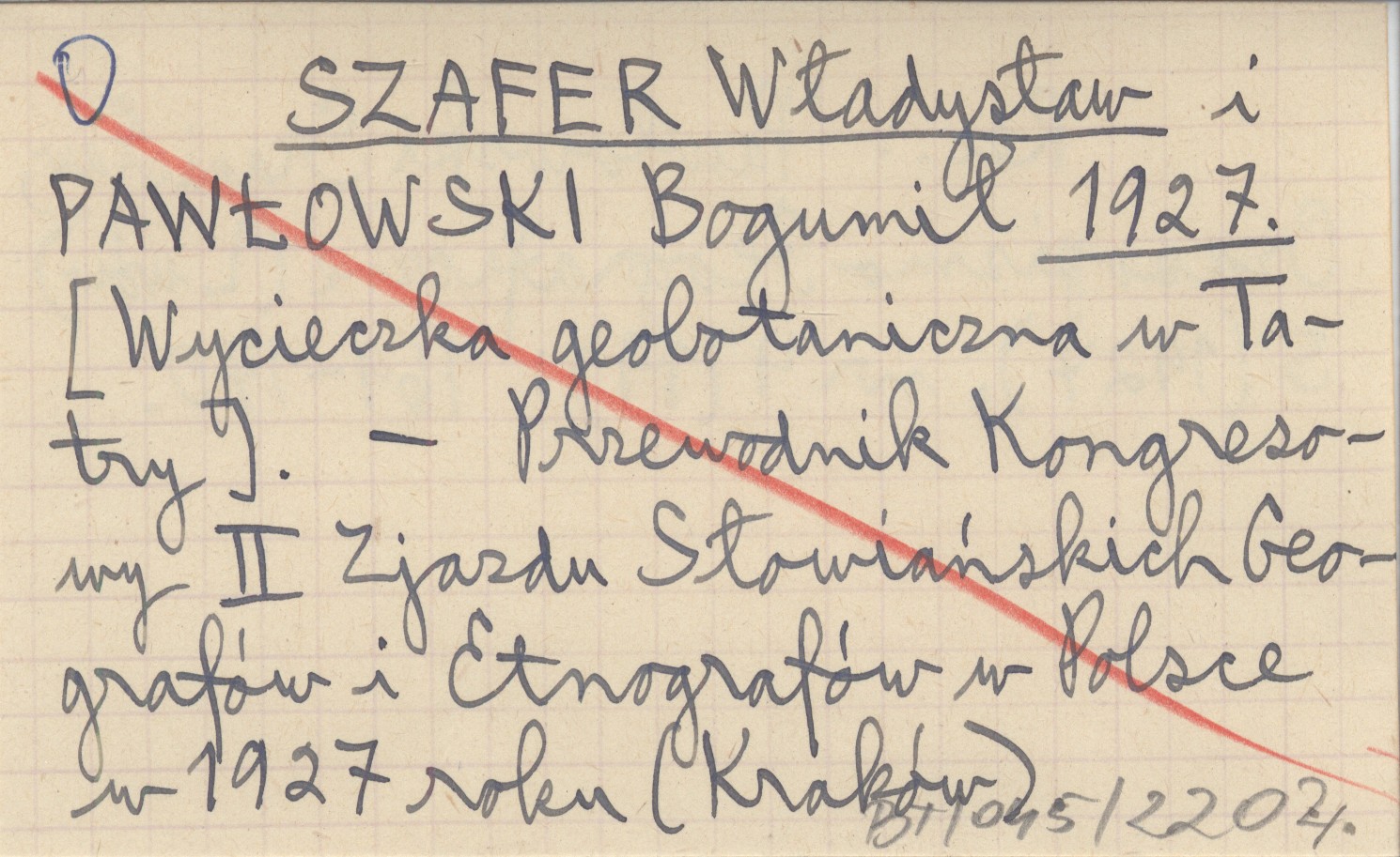 SZAFER Władysław PAWŁOWSKI, Bogumił. ; 1927 [Wycieczka geobotaniczna w Tatry.]