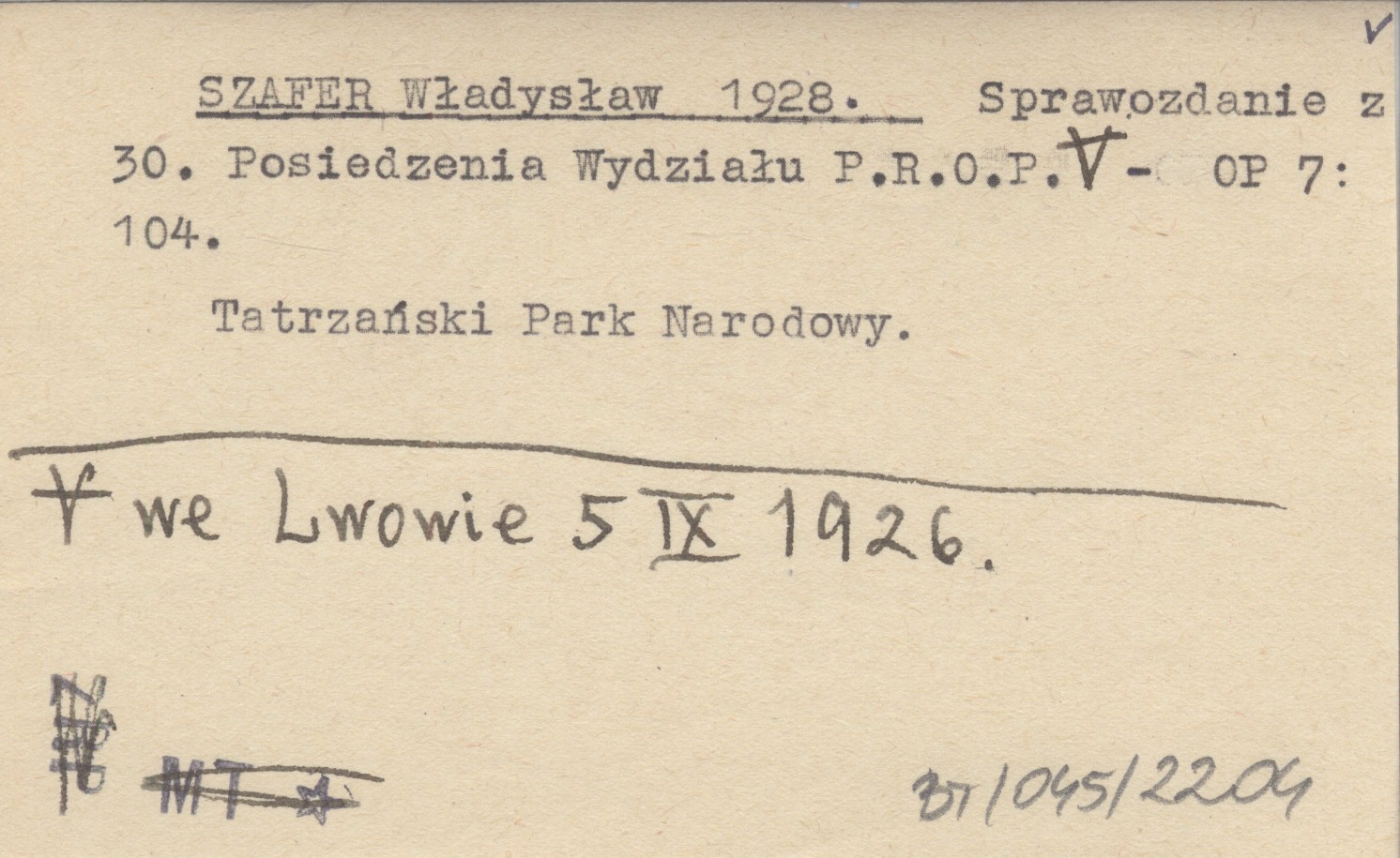 SZAFER Władysław 1928 Sprawozdanie z 30. Posiedzenia Wydziału P.R.O.P. we Lwowie 5 IX 1926.